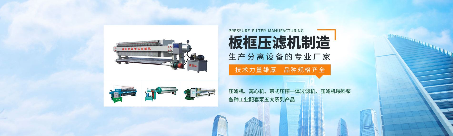 禹州市龍馬壓濾機制造有限公司是生產(chǎn)分離設(shè)備的廠家,技術(shù)力量雄厚,加工設(shè)備精湛,經(jīng)驗豐富,品種規(guī)格齊全,質(zhì)量可靠,性能穩(wěn)定,結(jié)構(gòu)合理,供貨及時,產(chǎn)品暢銷各地,深受用戶好評。 我廠生產(chǎn)壓濾機已有多年歷史,總?cè)藛T38人,廠區(qū)總面積8600平方米。主要生產(chǎn)壓濾機、離心機、帶式壓榨一體過濾機、壓濾機喂料泵及各種工業(yè)配套泵五大系列產(chǎn)品。 壓濾機型號有:200、320、450、630、800、1000、1250、1500、2000、Φ800、ΦIOOO型板框式及廂式,過濾機面積0.5㎡—2000㎡。板框材質(zhì)有鑄鐵、增強聚丙烯、玻璃纖維聚丙烯(耐高溫120℃)及不銹鋼板框等。壓緊形式有手動壓緊、機械壓緊、千斤頂壓緊、液壓壓緊、自動保壓壓緊及微機控制、全自動壓緊等。過濾形式有明流、暗流、明流可洗、暗流可洗和雙向交叉洗滌等。產(chǎn)品廣泛用于石油、化工、制藥、制糖、冶金、食品、陶瓷、淀粉、造紙、洗煤、污水處理等作液